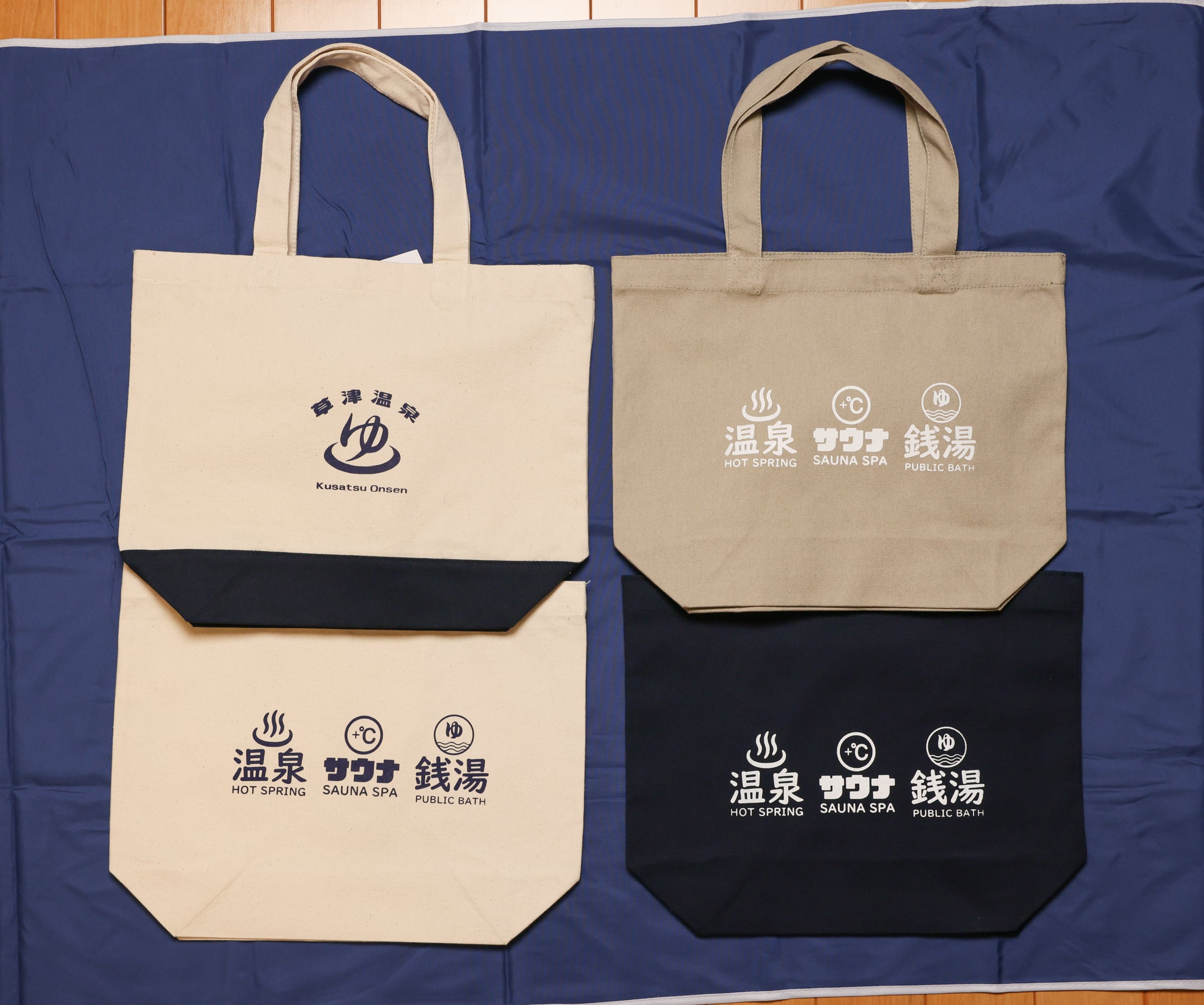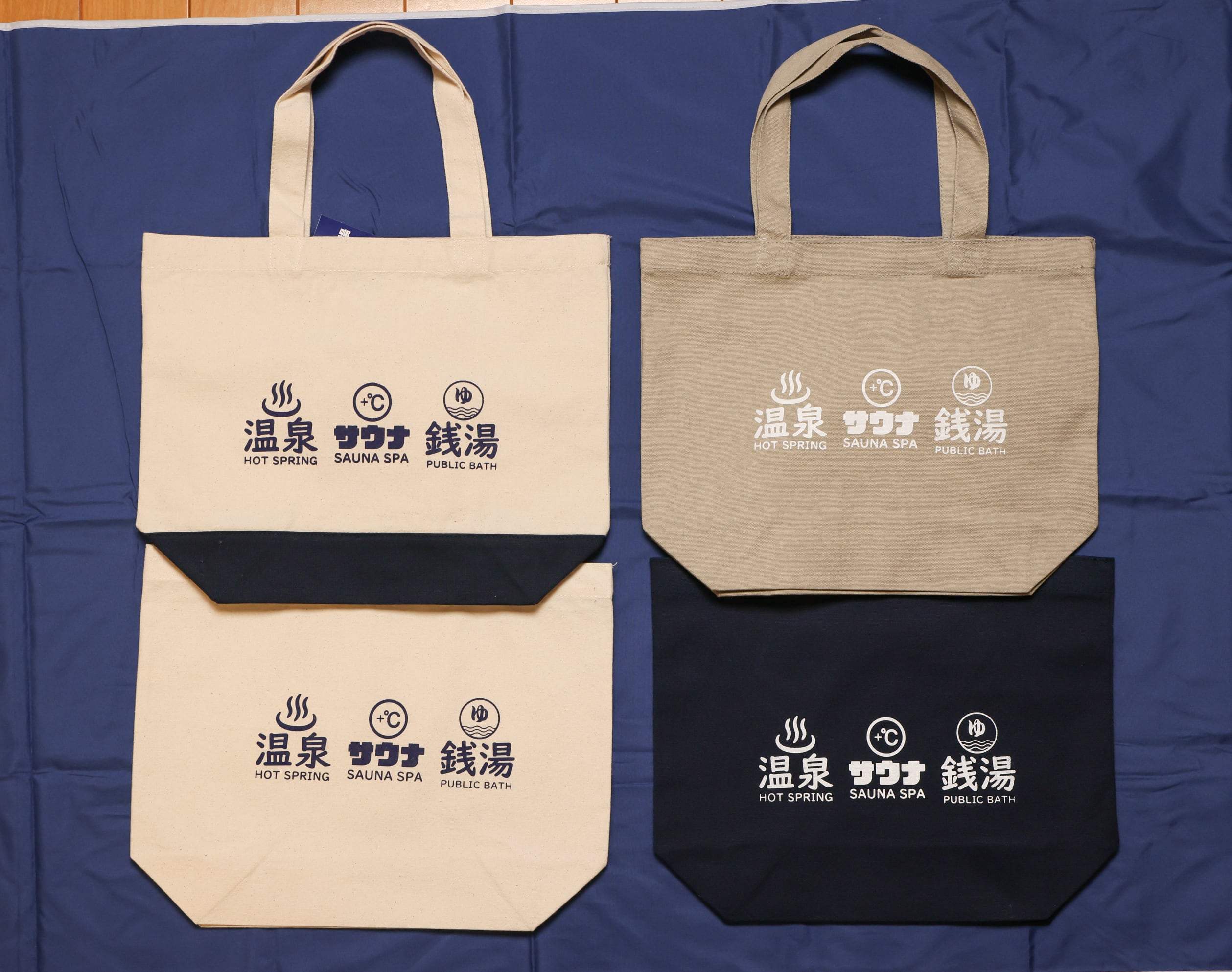公衆浴場シリーズのトートバッグの裏に、するがやオリジナルのロゴを入れてもらっちゃいました★